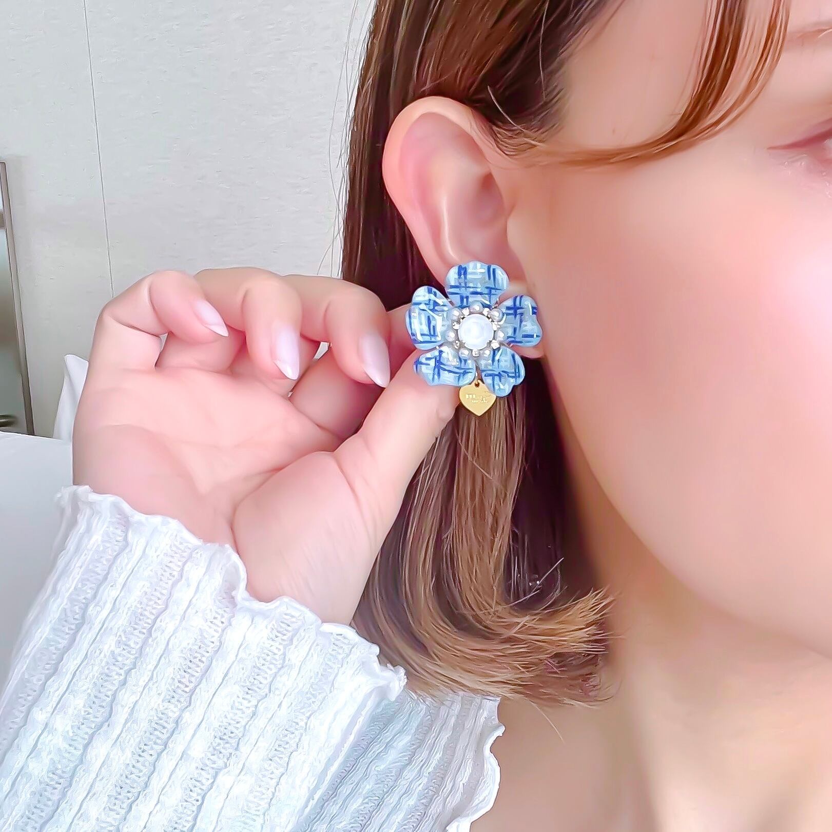 【earrings】tweed〜YUKInoHANA〜 ツイード 青 推しカラー