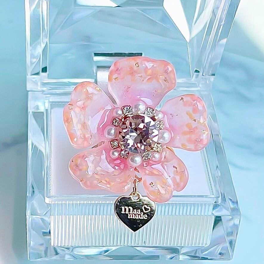 ピアスは、お花の下のオリジナルハートチャームは構造上付きません。