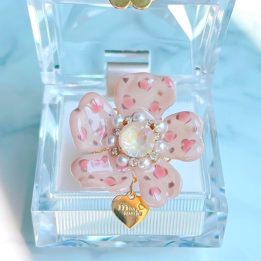 ピアスは、お花の下のオリジナルハートチャームは構造上付きません。