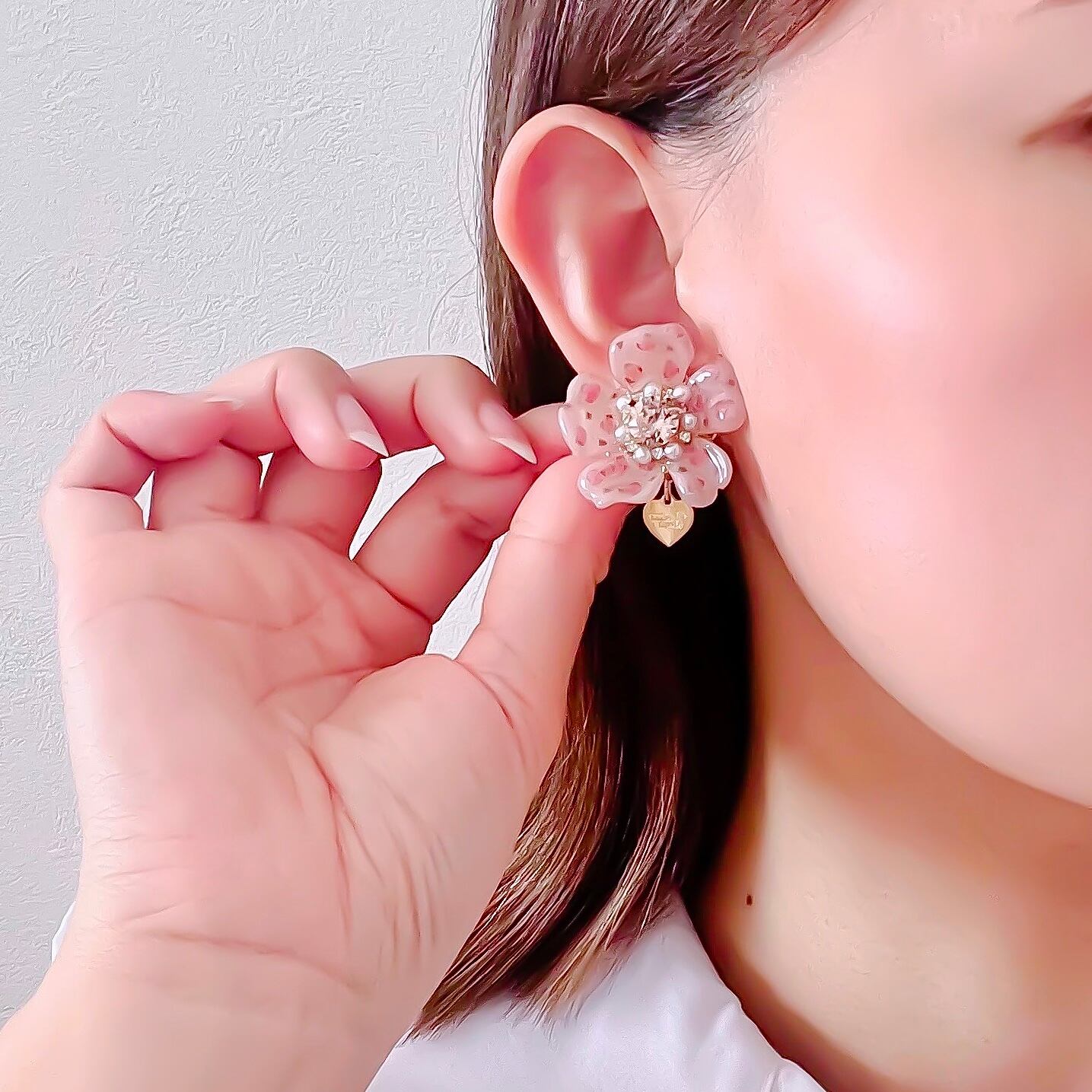 ピアスは、お花の下のオリジナルハートチャームは構造上付きません。