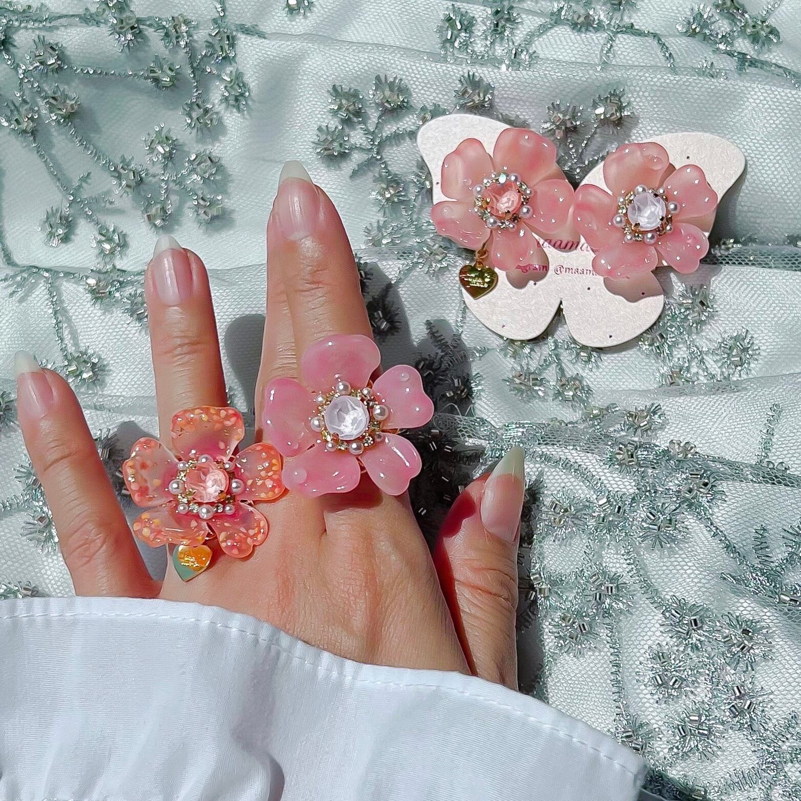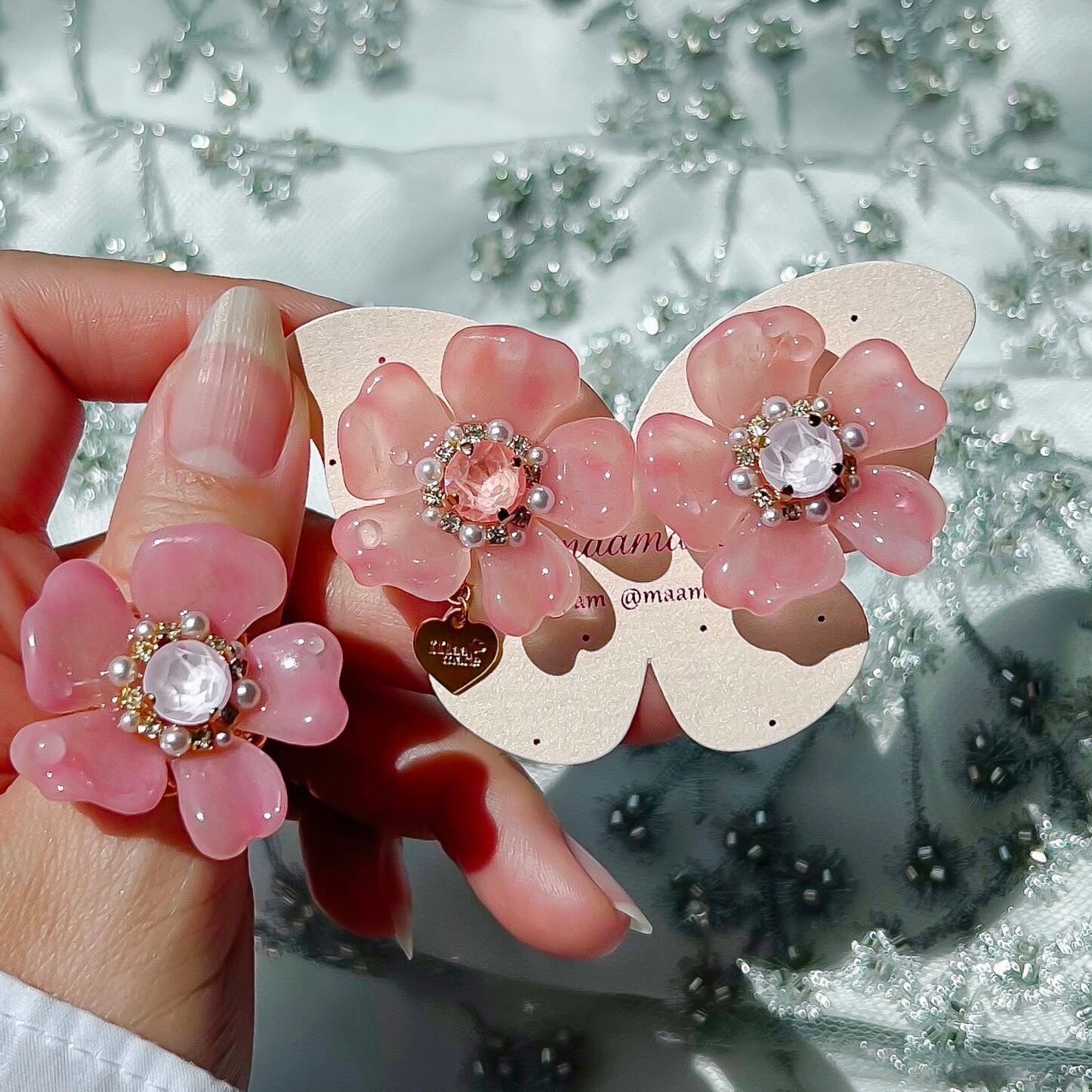 ピアスは、お花の下のオリジナルハートチャームは構造上付きません。