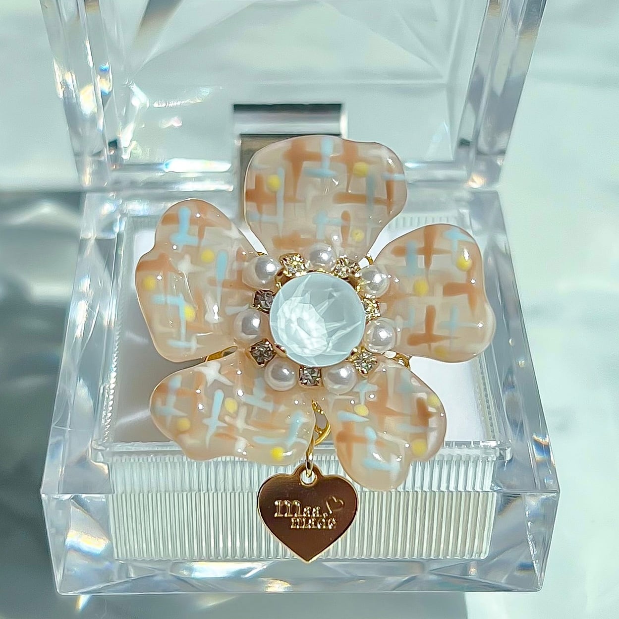 まわりのパールとクリスタルのデコレーションで