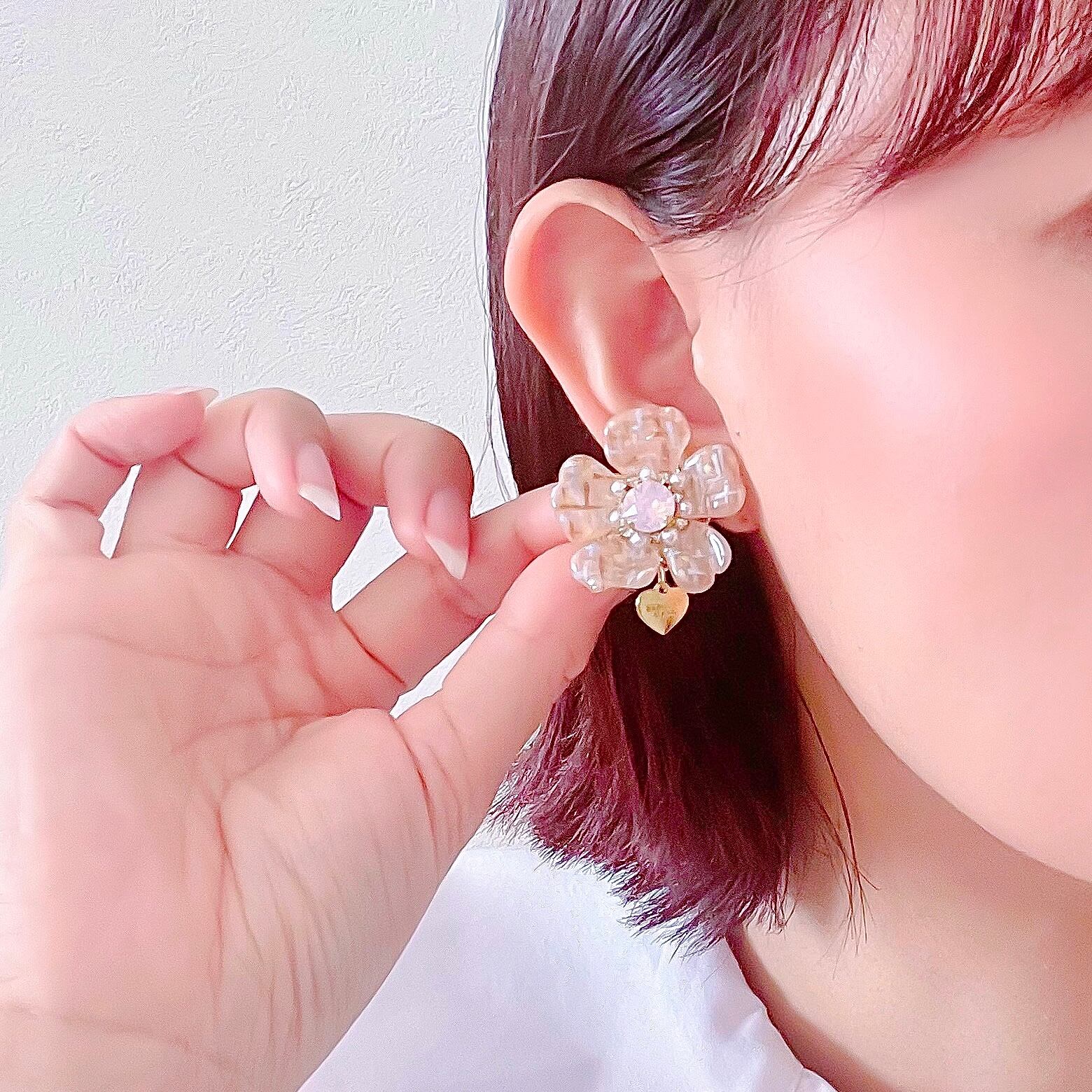 ピアスは、お花の下のオリジナルハートチャームは構造上付きません。