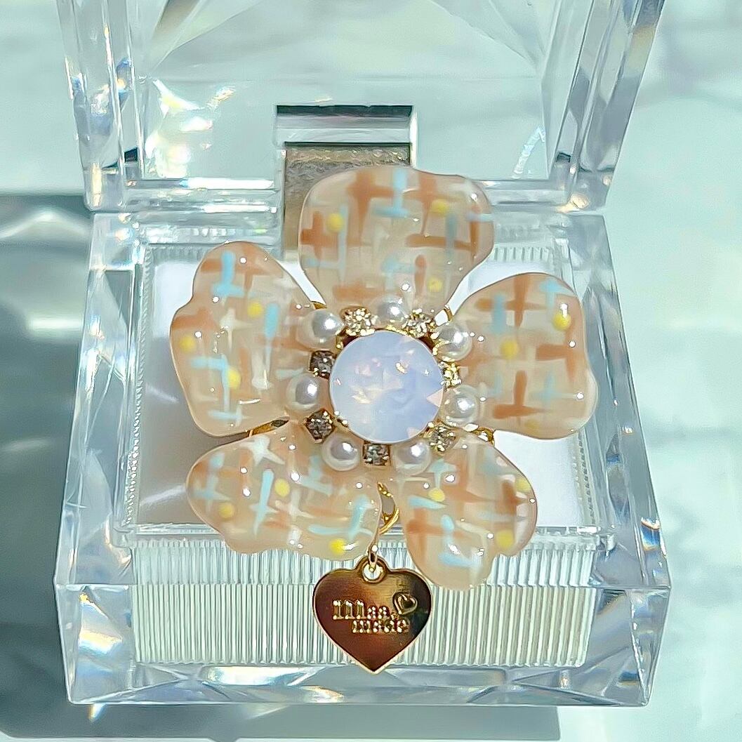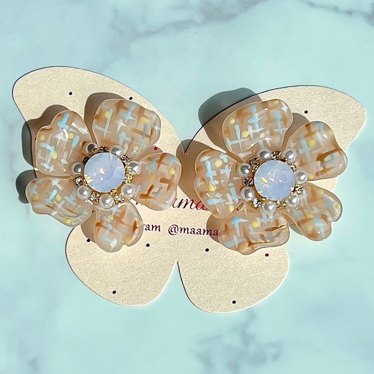 【earrings】tweed〜YUKInoHANA〜 秋 ツイード ベージュ 淡色 推しカラー