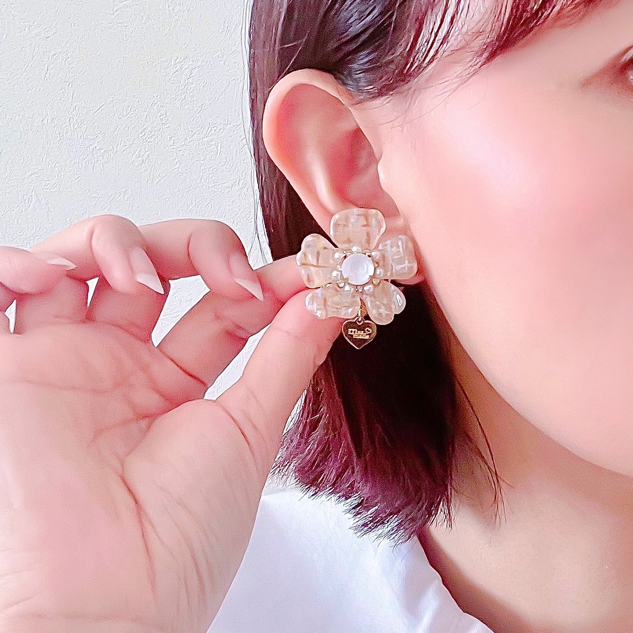 ピアスは、お花の下のオリジナルハートチャームは構造上付きません。