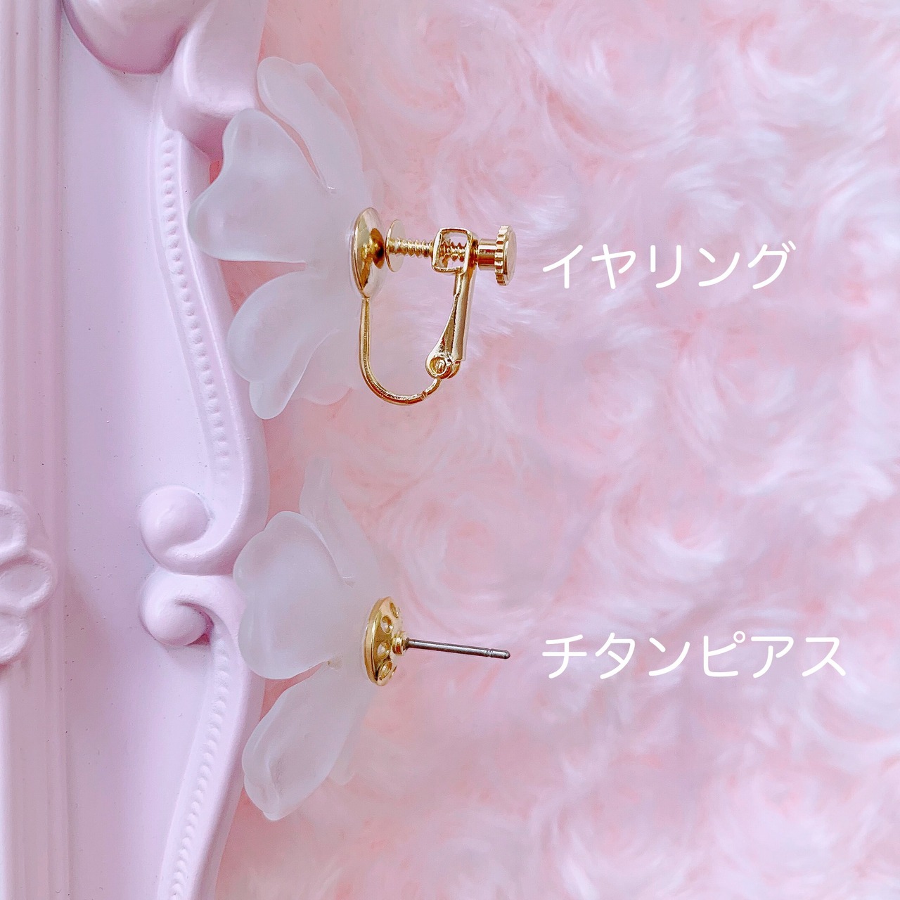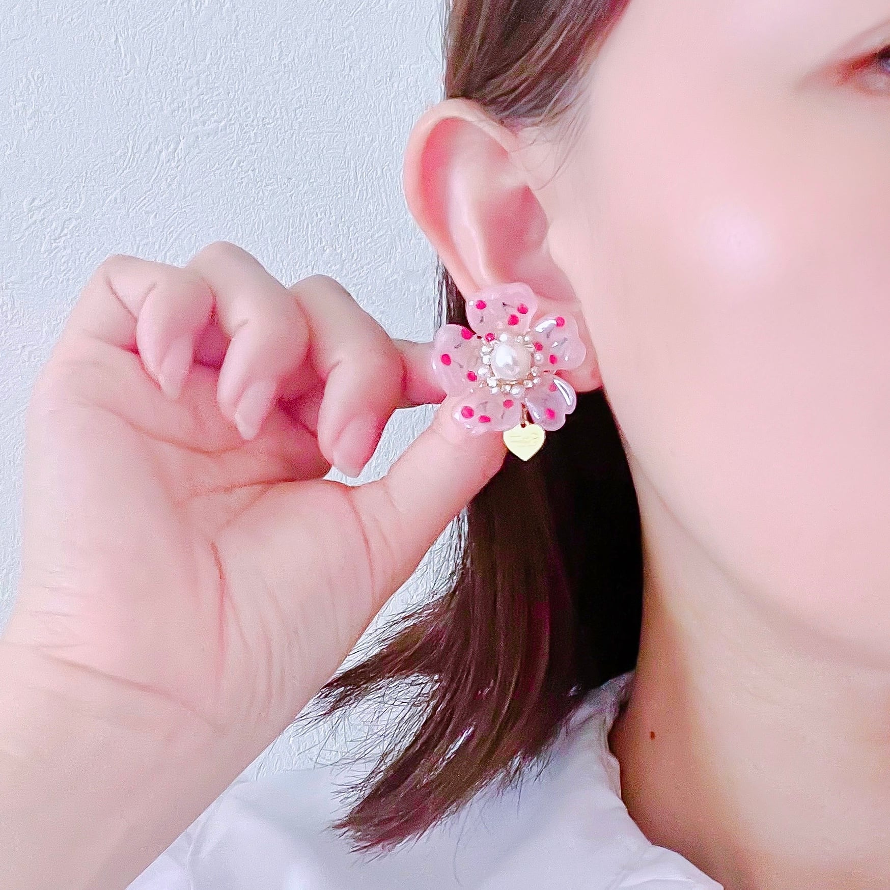 ピアスは、お花の下のオリジナルハートチャームは構造上付きません。