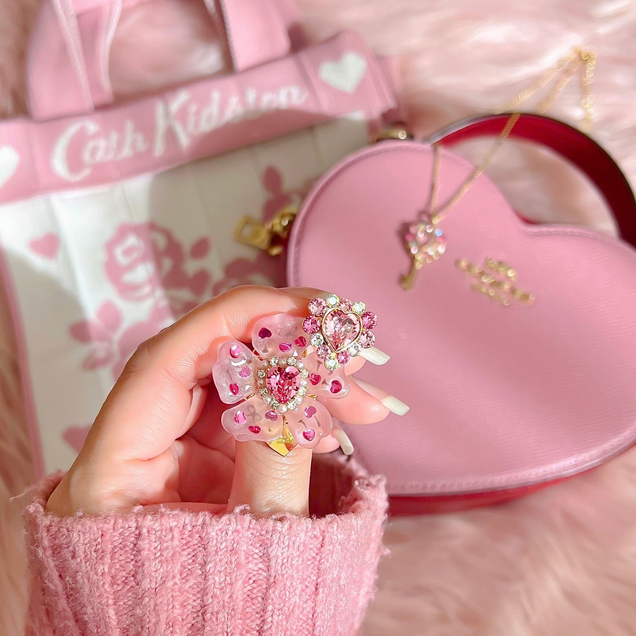 煌めくピンクのハートをチェリーの果実に見立て