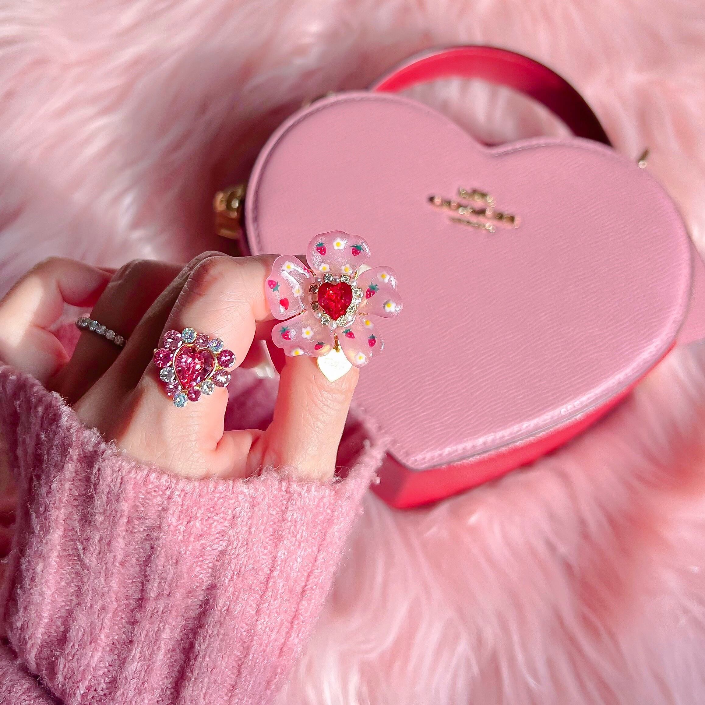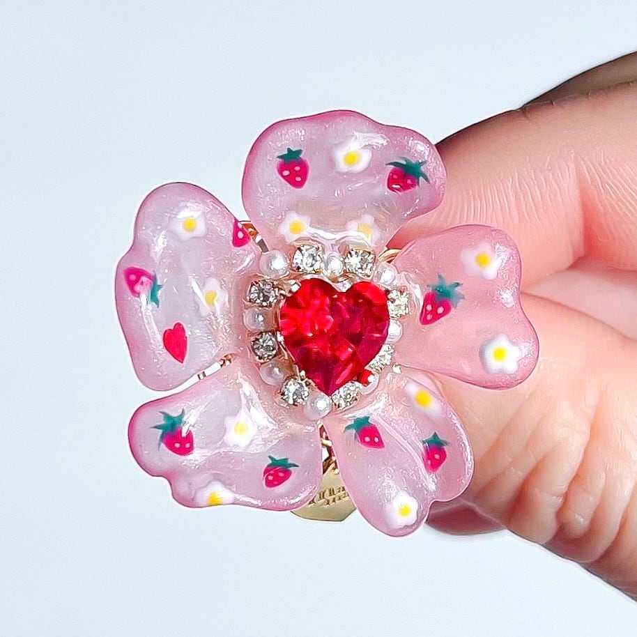 いちご ハート ビジュー フラワーリング|量産型 ガーリー 推し活