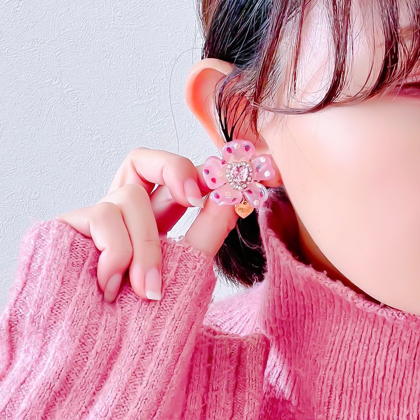 いちご ハート ビジュー フラワーピアス・イヤリング|量産型 ガーリー 推し活