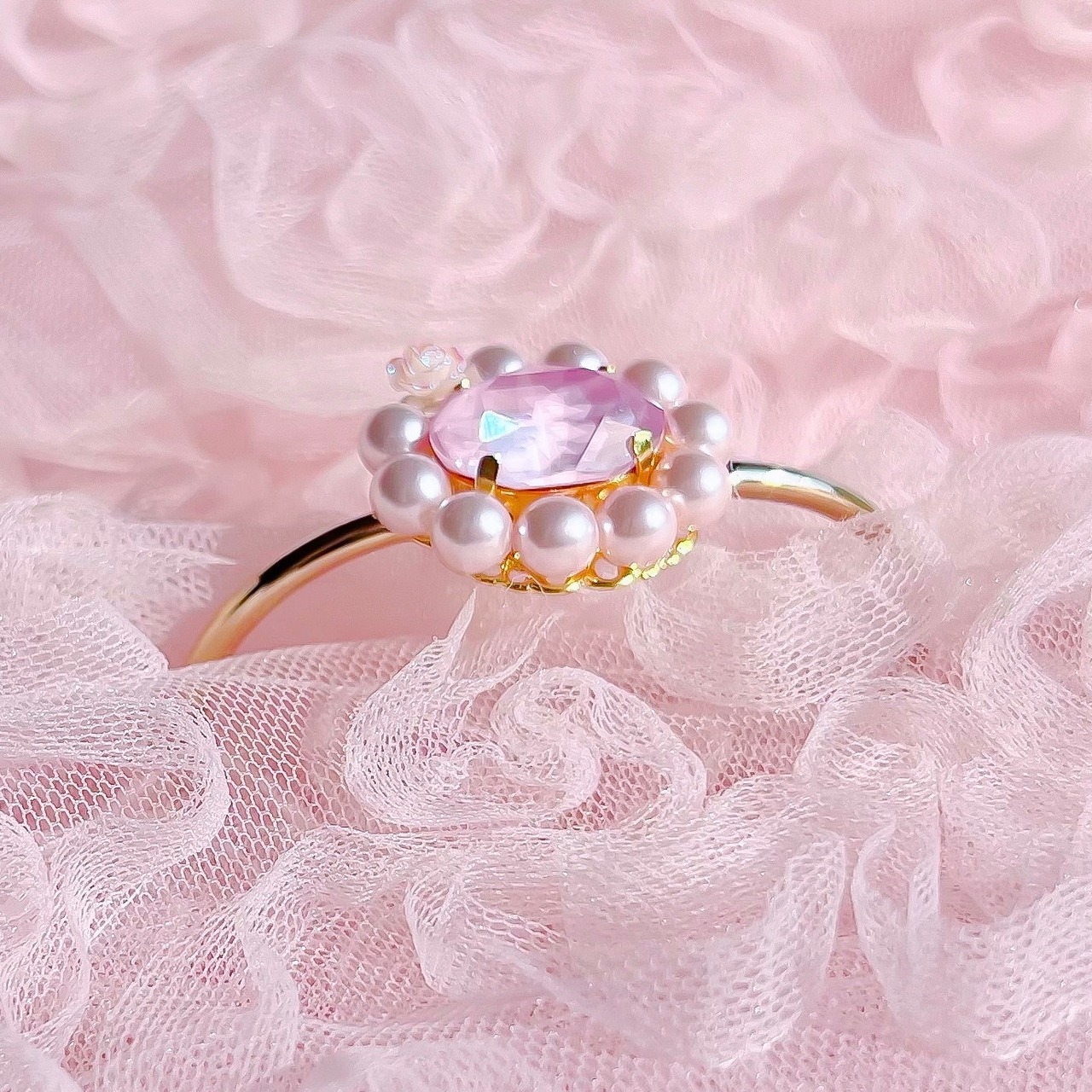 桜のようにやわらかく可憐なピンクの大粒クリスタルを