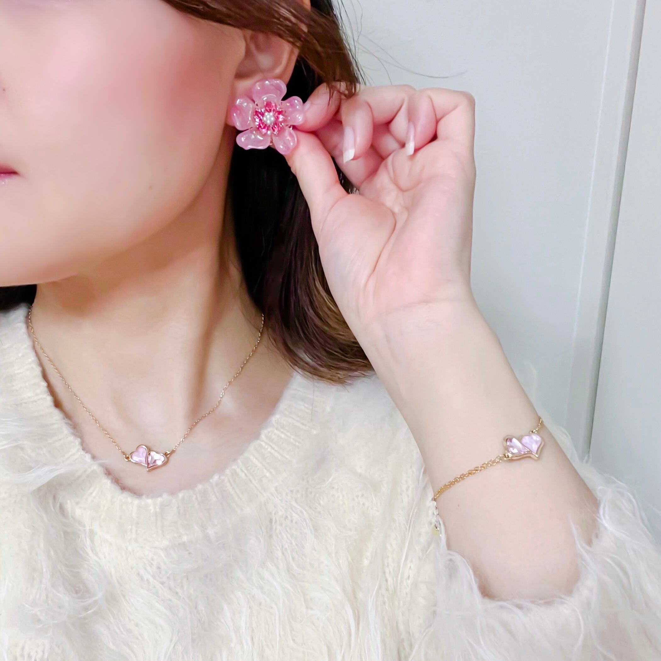 ピアスは、お花の下のオリジナルハートチャームは構造上付きません