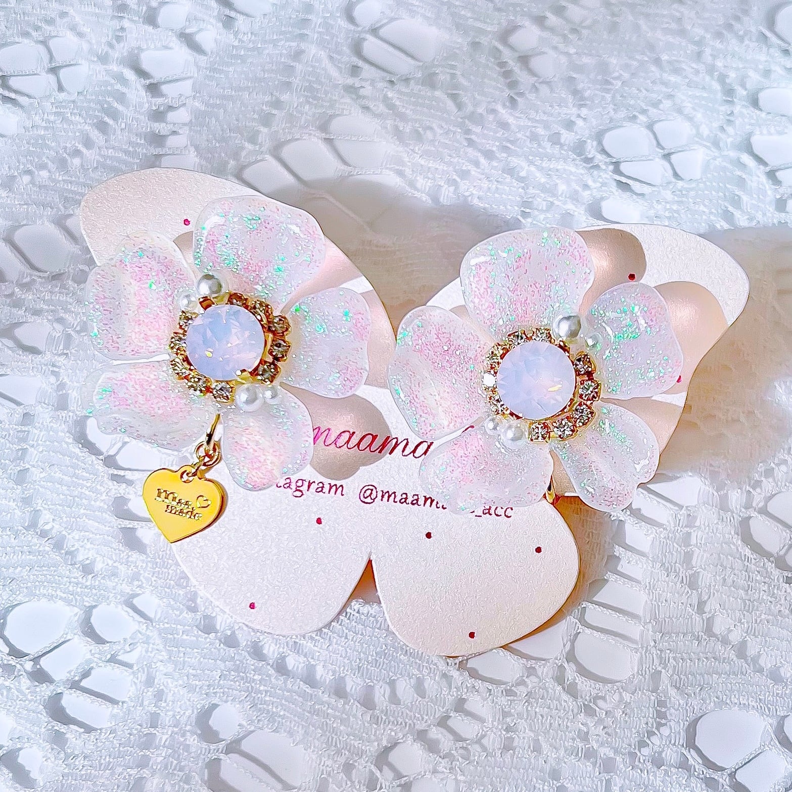 ※ お花の下のオリジナルハートチャームは、ピアスには構造上付きません。