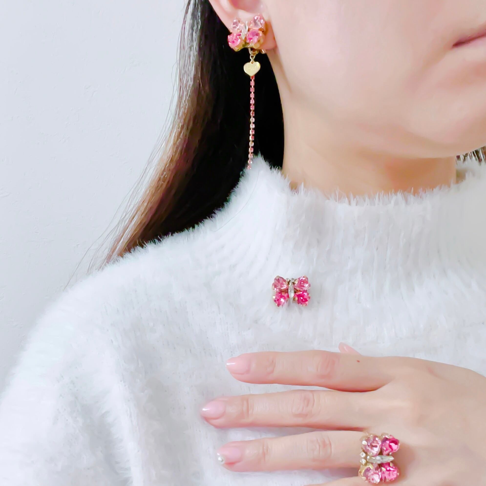 一つの作品に 8.8×8mmの大きめハートのクリスタルを贅沢に4粒も使用。