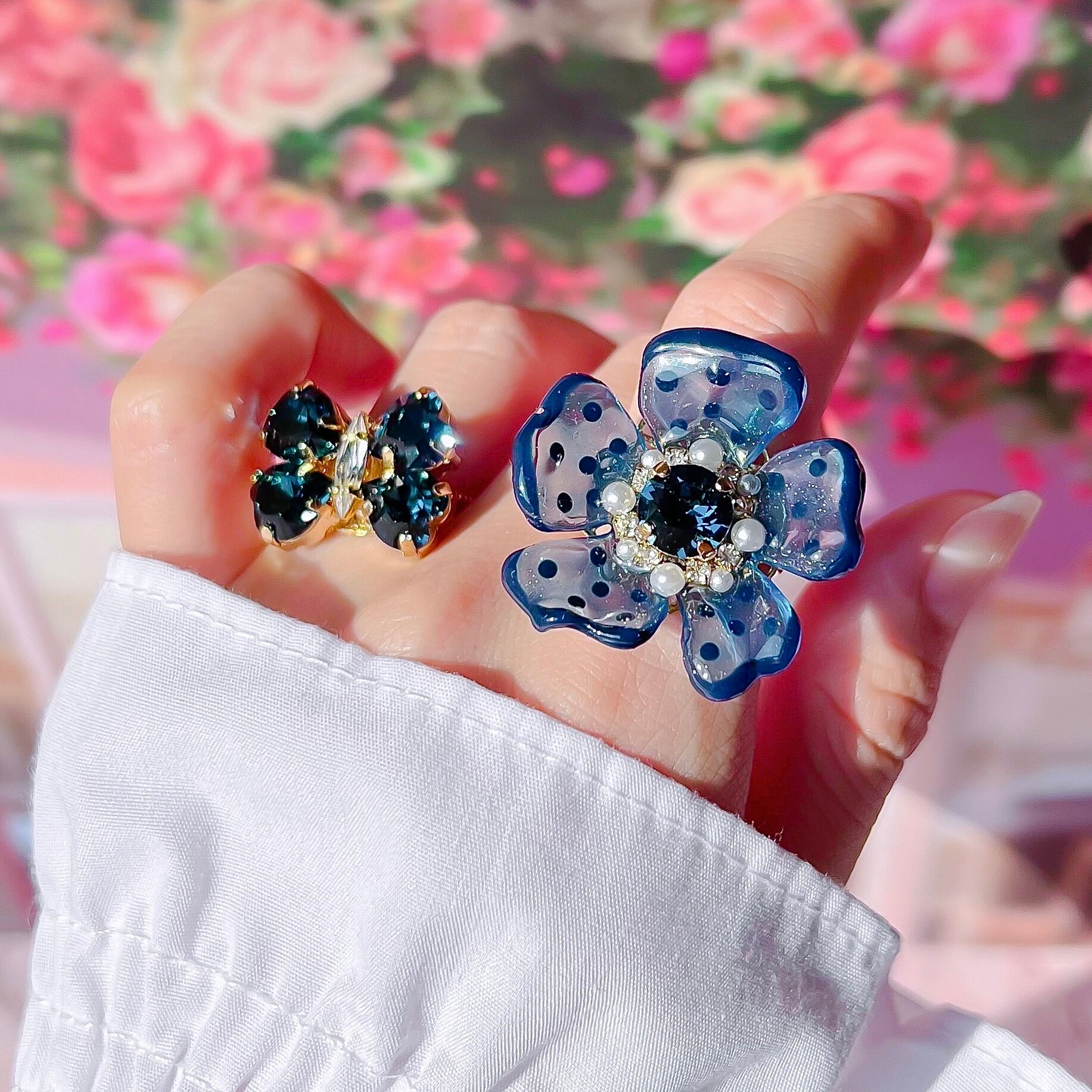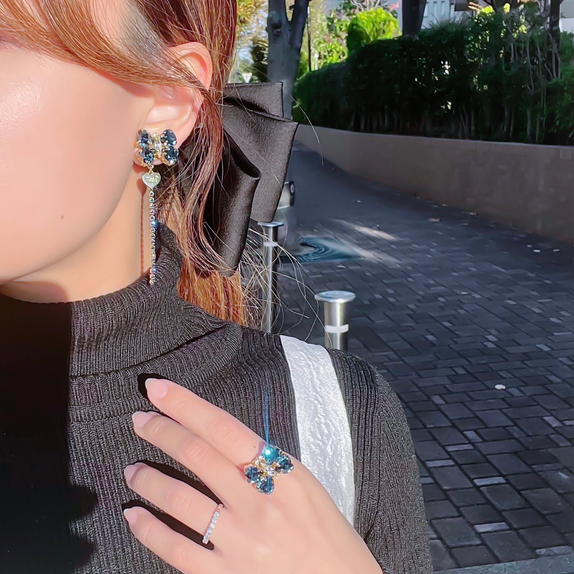 一つの作品に 8.8×8mmの大きめハートのクリスタルを贅沢に4粒使用。