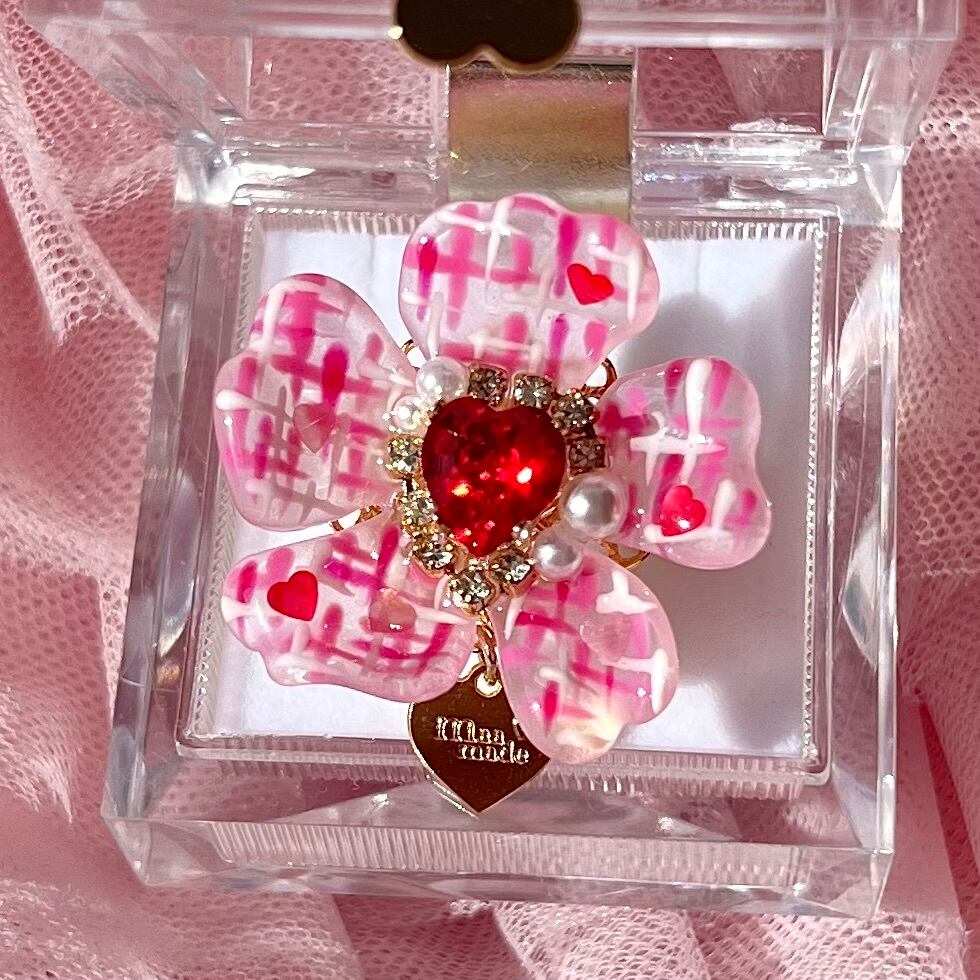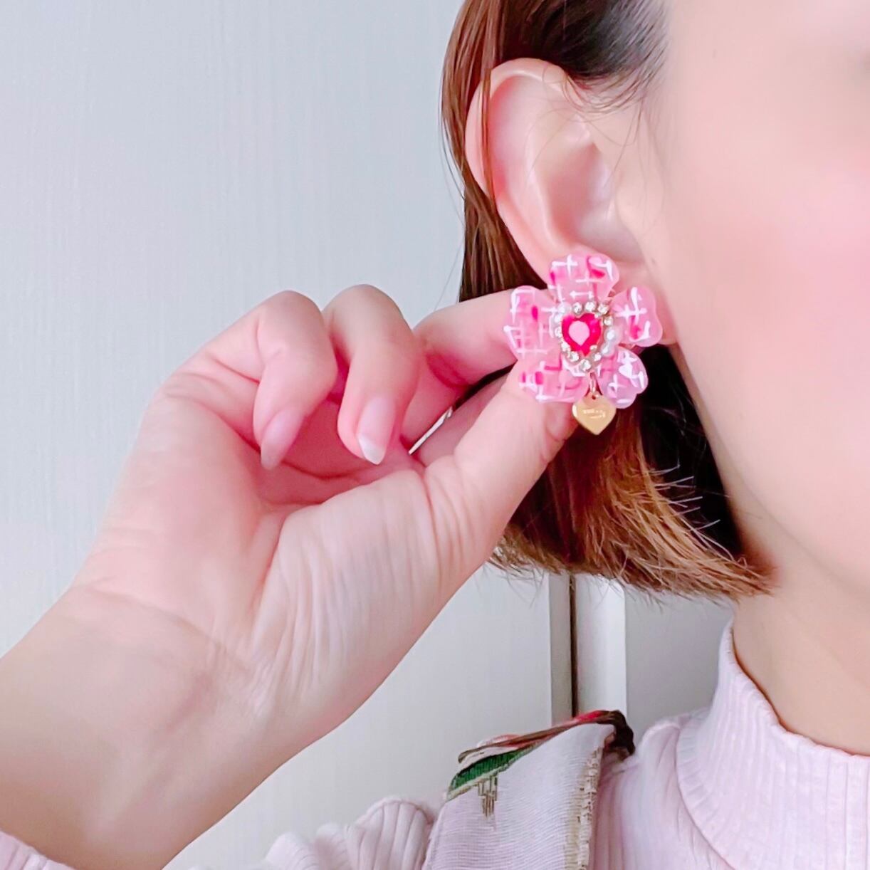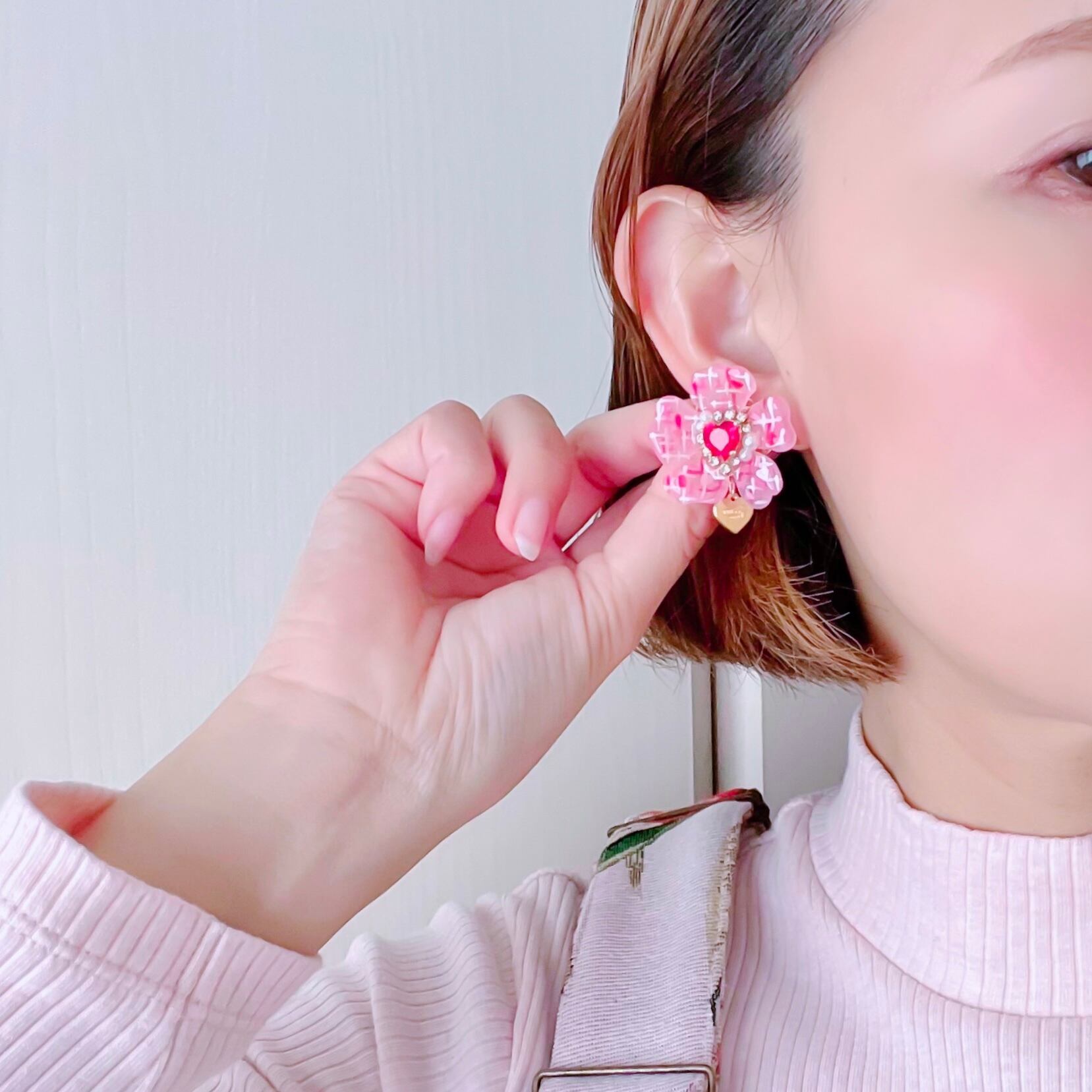 ※ピアスは、お花の下のオリジナルハートチャームは構造上付きません。